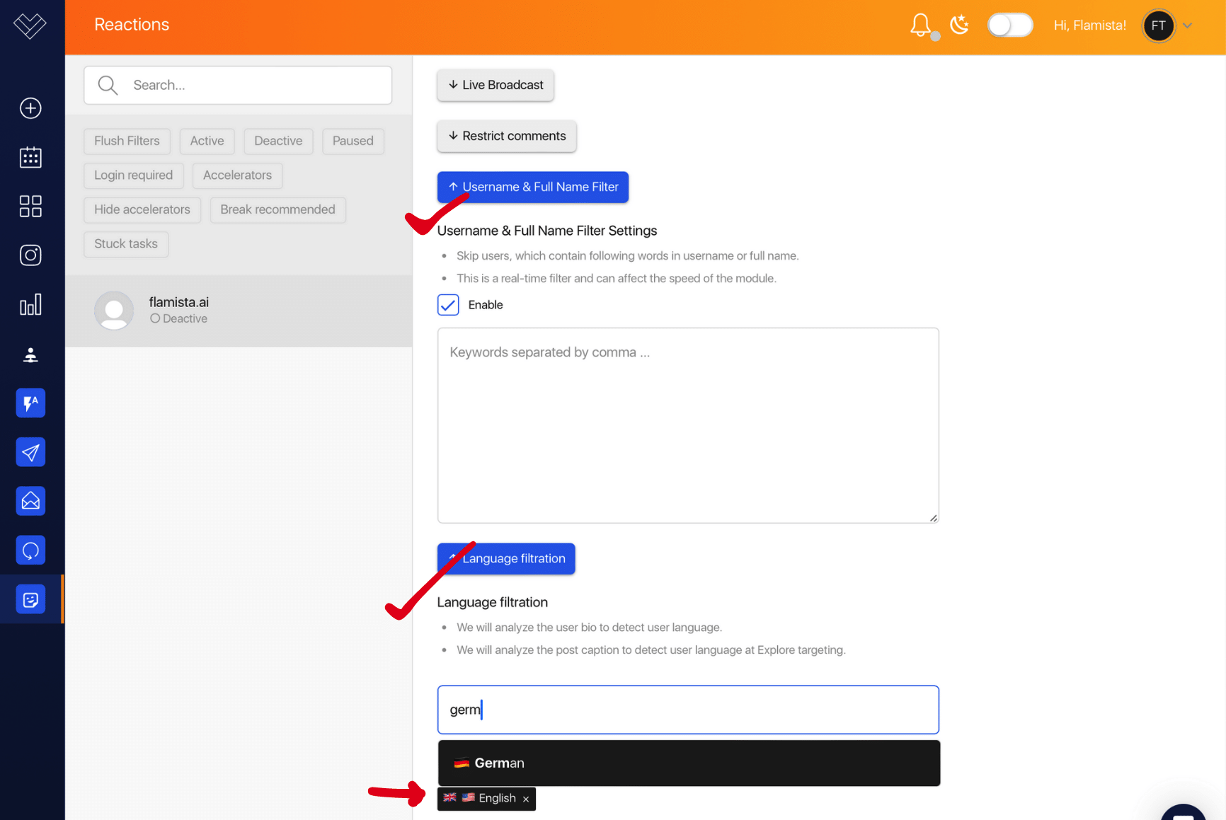 In this FAQ, you will learn how to set filters for automation of Reactions Pro -> Mass Story Reactions - (Polls, Polls Sliders, Quiz, Countdowns, Mass Story View, Like Stories), Auto Follow, Auto Unfollow, Auto Like, Auto Comment.